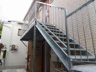 元の階段は手摺部分の鉄骨にサイディングを貼り付けた階段でした。