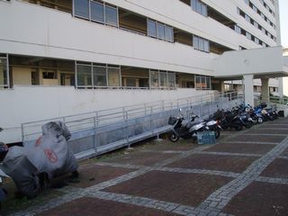 多くの方々がお住まいになっている団地の入口に、お体の不自由な方の為のスロープを設けました。