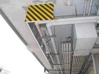 トラックが駐車する際に衝突しないよう、表面に危険防止用のカッティングシートを貼りました。